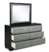 The Luxor Bedroom Collection is a sleek and modern addition to any bedroom. Made from birch and poplar solids and oak veneers, this collection exudes a stylish and contemporary feel.The collection includes a bed, a nightstand, a dresser, a mirror, and a chest. These pieces are upholstered in a combination of 3% faux leather, 70% PVC, and 27% Terylene, providing a durable and comfortable surface.The Luxor Bedroom Collection is available in black and white, allowing you to choose the color that best fits your personal style. Its sleek and modern design makes it a perfect choice for anyone looking to add a touch of contemporary style to their bedroom.