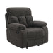 Introducing the Bravo sofa, console loveseat, and glider recliner - the perfect addition to any living room. Available in a stylish charcoal or stone light gray color, these pieces are upholstered in 100% polyester for a durable and easy-to-clean finish. The pocket coil cushioning provides unparalleled comfort, while the console cupholder and sofa center back drop-down tray offer practical for everyday use. Best of all, you have the option to choose between a manual or powered footrest, allowing you to fully relax and unwind. Upgrade your living space with the Bravo collection today.