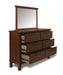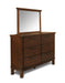 The Cagney Bedroom Collection is a stylish and practical addition to any home. This collection includes a bed, chest, dresser, mirror and nightstand, all made with durable rubberwood solids and acacia veneers. The collection is available in two finishes - chestnut or vintage - to complement any decor.The 100% polyester upholstery, available in coffee or gray, adds a touch of comfort and luxury to the collection. Each piece English/French dovetail construction and ball bearing glides for smooth operation. The top drawers are also felt lined for added protection of your belongings.With its sleek design and sturdy construction, the Cagney Bedroom Collection is the perfect choice for anyone looking to upgrade their bedroom furniture. So, it will be a great choice for you.