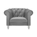 Introducing the Emma living room set - the perfect combination of style and comfort for your home. This set includes a sofa, loveseat, and chair, all featuring a stunning crystal tufted back that adds a touch of glamour to any space. Made with 100% polyester, these pieces are durable and easy to maintain. The set is available in three sleek colors - blue, black, and gray - so you can choose the one that best matches your decor. Upgrade your living room with the luxurious Emma set and enjoy hours of relaxation and entertainment.