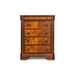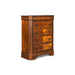 The Sheridan Bedroom Collection is a stunning addition to any home. The collection includes a bed, nightstand, dresser, mirror, chest, and media chest, providing everything you need to create a cohesive and elegant bedroom.Crafted from poplar and basswood solids and veneers, this collection is both durable and beautiful. The burnished cherry finish adds warmth and depth to the pieces, making them a welcoming addition to your home.The full extension drawer glides make it easy to access all your belongings, while the 5-piece drawer box with 4 corner dovetail construction ensures the drawers are strong and stable. The felt-lined top drawers in the dresser, chest, and nightstand are perfect for storing your most delicate items.The solid casegood bottoms and bed side rails with 4 support slats add extra strength and stability to the pieces. The beveled glass mirror finishes off the collection with a sophisticated touch.Upgrade your bedroom with the Sheridan Bedroom Collection and enjoy its timeless beauty for years to come.